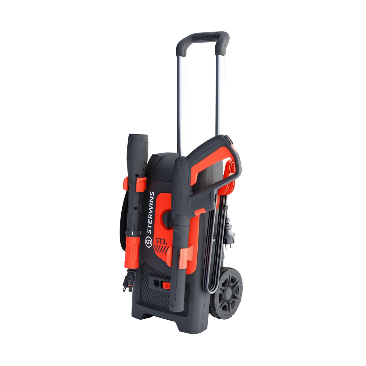 Hidrolimpiadora de 135 bar y 2 000 W para eliminar suciedad en patios, coches y fachadas.