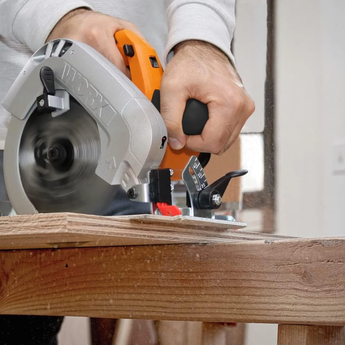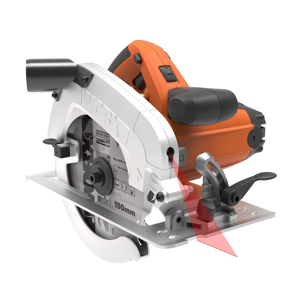 Sierra circular Worx de 1 600 W con disco de 190 mm y guía láser. Precisa y robusta para cortes en madera y tableros.